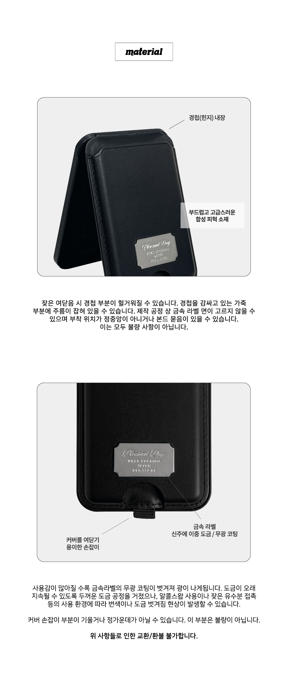 - 제품 특성상 단순 변심, 부주의에 의한 제품 손상 및 파손, 사용 및 개봉한 경우 교환/반품이 불가합니다.