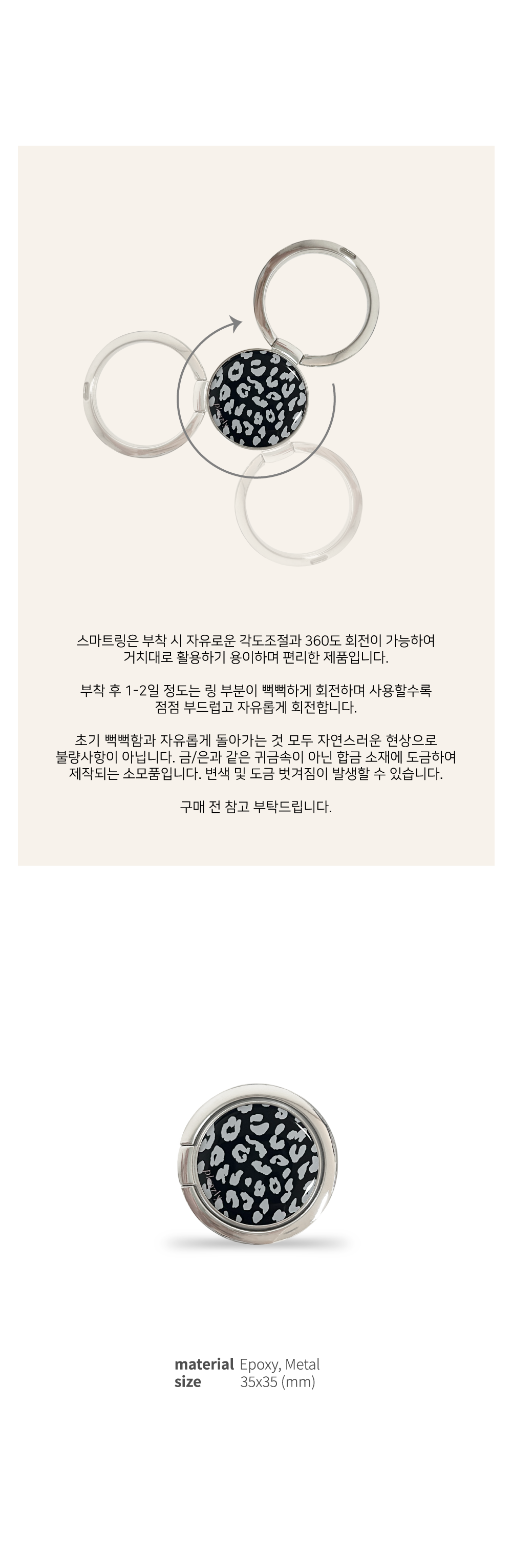 * 스마트링의 경우, 금속 코팅면이 매끄럽지 않을 수 있습니다. 해당 부분 불량이 아닌 점 구매 전 꼭 참고 부탁드립니다.