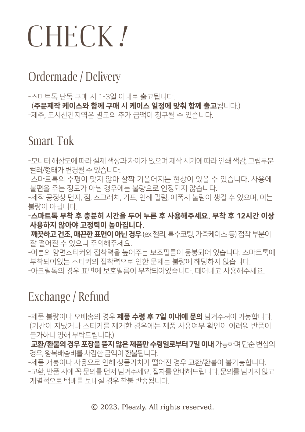 - 제품 특성상 단순 변심, 부주의에 의한 제품 손상 및 파손, 사용 및 개봉한 경우 교환/반품이 불가합니다.