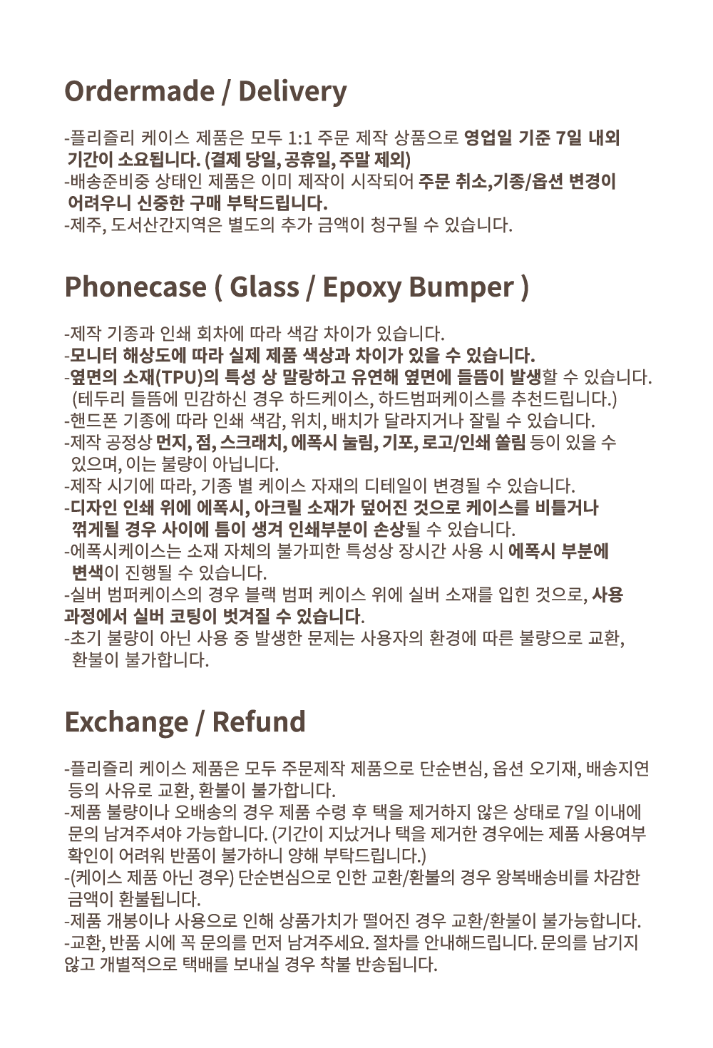 📦 에폭시/글래스 범퍼케이스 배송 안내
