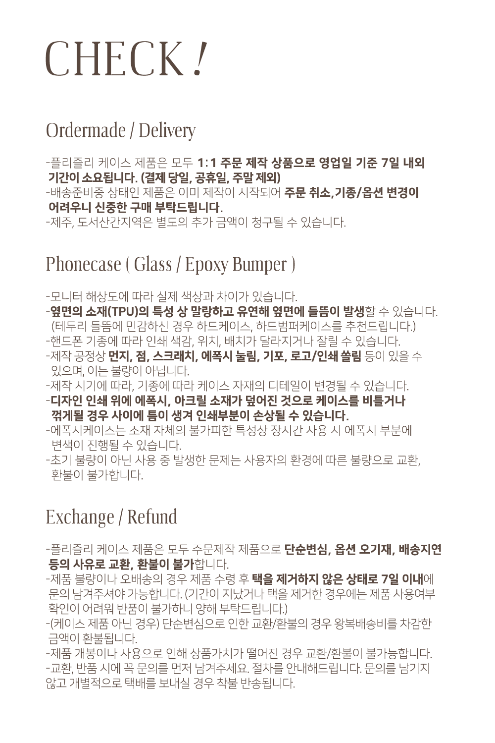제작처 인쇄 장비 문제로 일부 기종은 영업일 기준 10일 이상 소요 예정입니다. 이 점 양해 부탁드리며, 꼭 참고하시어 여유로운 주문 부탁드립니다.