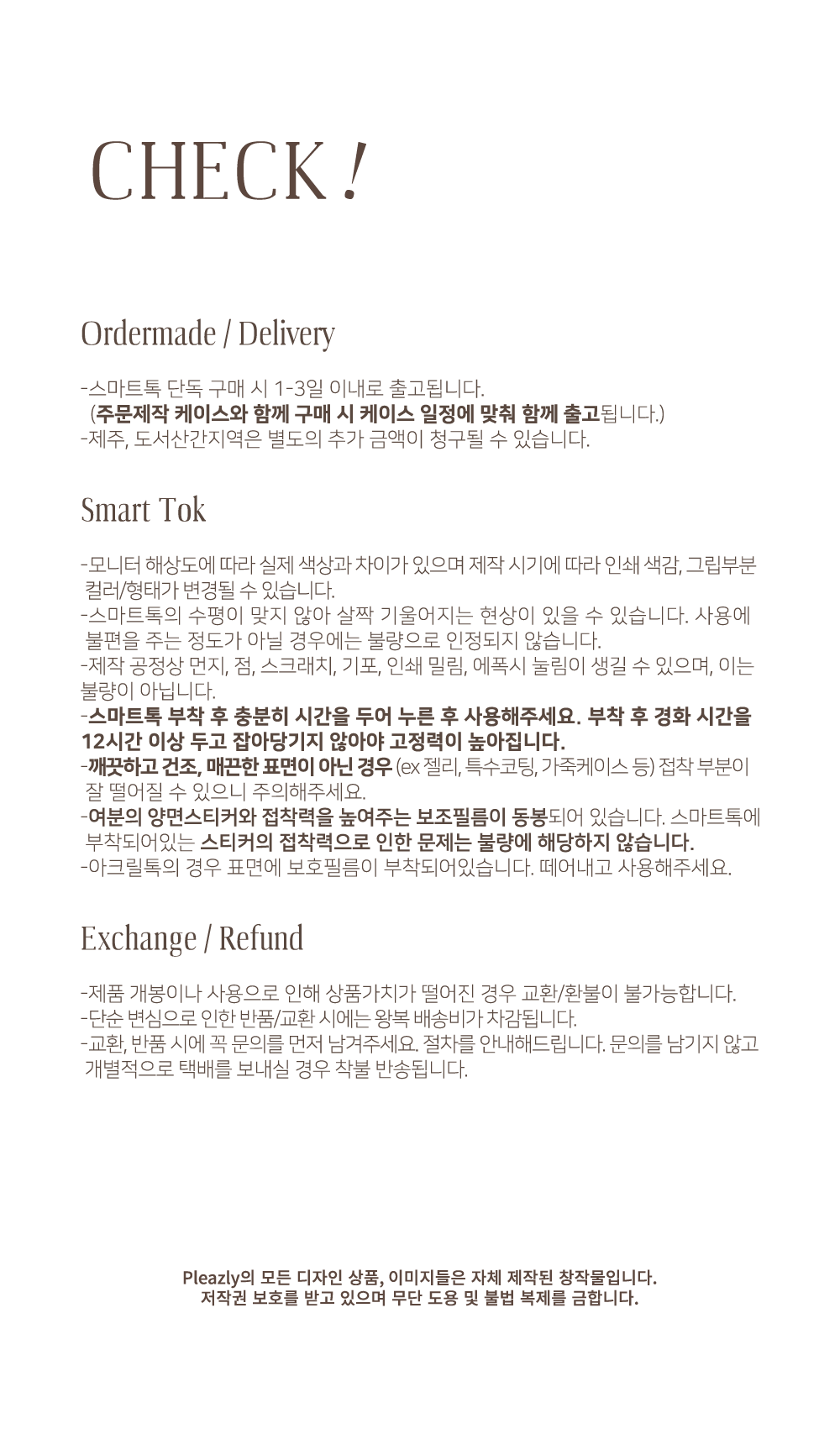 - 제품 특성상 단순 변심, 부주의에 의한 제품 손상 및 파손, 사용 및 개봉한 경우 교환/반품이 불가합니다.