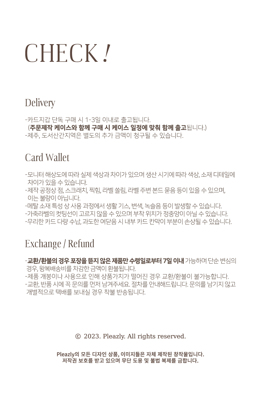 - 단순 변심의 경우 수령일로부터 7일 이내까지 교환∙반품이 가능합니다. (교환/반품비 고객님 부담)