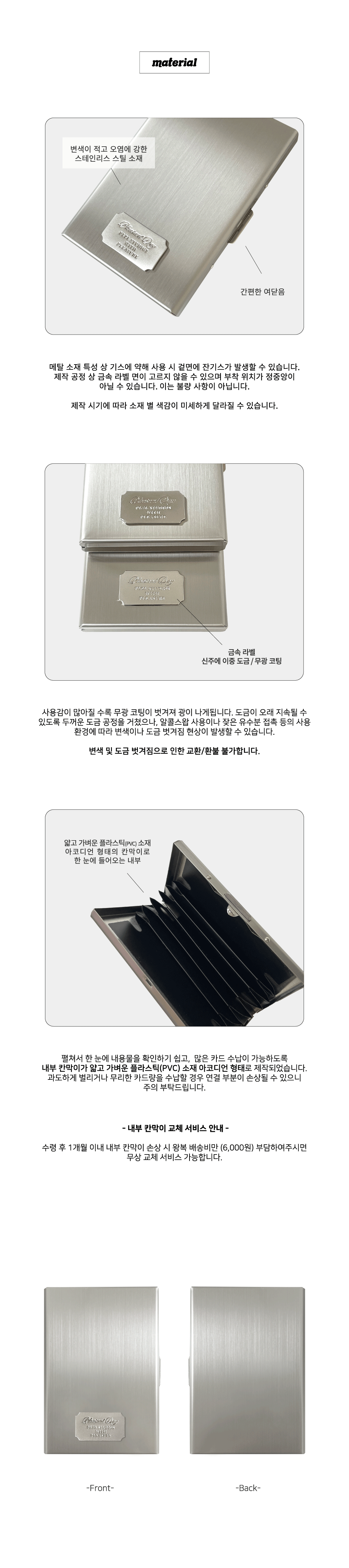 - 제품 특성상 단순 변심, 부주의에 의한 제품 손상 및 파손, 사용 및 개봉한 경우 교환/반품이 불가합니다.