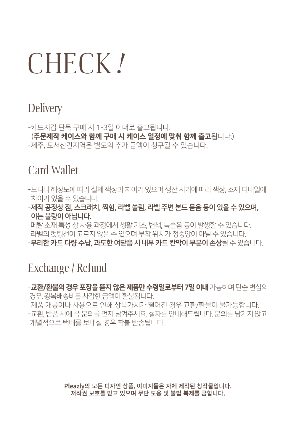 배송 기간 ㅣ 주말·공휴일 제외 7일내외